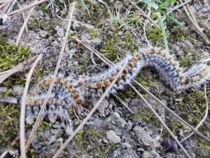 La chenille processionnaire du pin (Thaumetopoea pityocampa) se déplace en file indienne et, à partir d’un certain stade de développement, est recouverte de milliers de poils urticants microscopiques capables de provoquer des réactions cutanées, oculaires, respiratoires ou allergiques chez l’être humain.